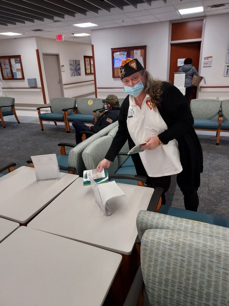 The picture I have sent is, myself handing out bibles and pamphlets of God’s word at the Local Veterans Hospital in Hampton Virginia. Spreading God’s word.