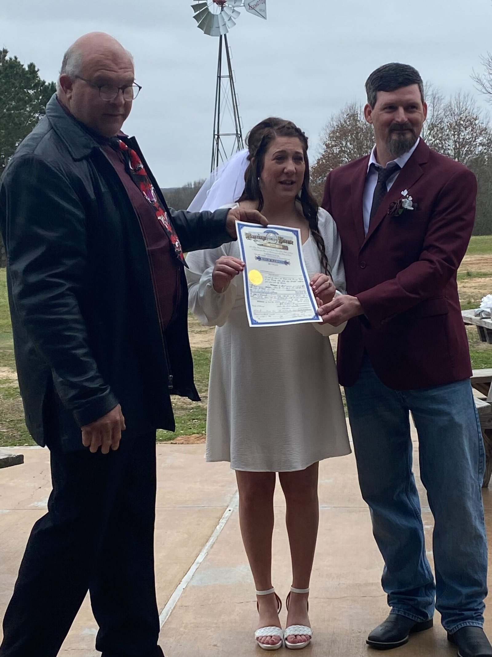 My dear friend Allen Farris and his wife Tricia. Both weddings performed at the Minneola Nature Preserve in beautiful Wood County Texas.