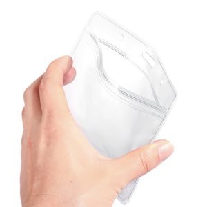 holder, paired with swivel metal clip - DURABLE, WATERPROOF resealable plastic vinyl pouch is tear-resistant, keeps content safe and secure; clips made of metal with poly straps